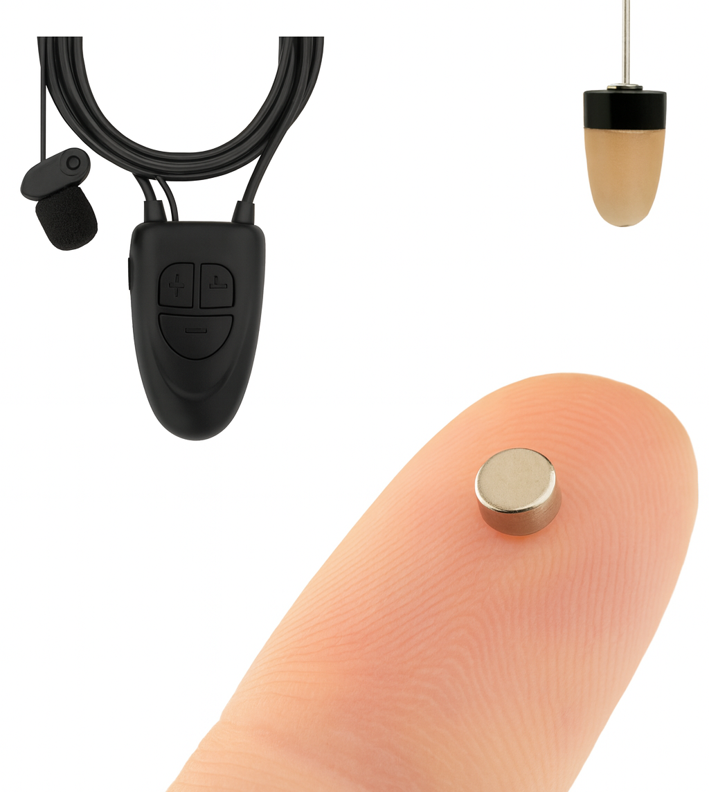 Pinganillo de 3 mm y Pinganillo VIP con conexión Bluetooth y micrófono integrado. Totalmente oculto, permite llamadas y control desde el collar.